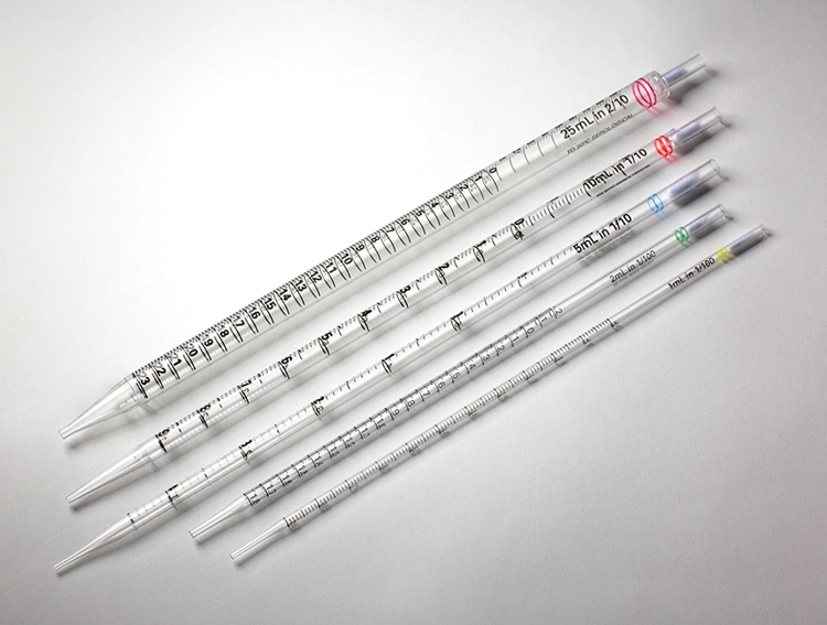 Pipette Capacity: 50 ml Sterility: + Scale accuracy: 0.1 ml Length: 33 cm Material: PS Reaches to the bottom of a liter bottle |