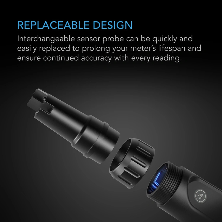 Każdą sondę czujnika pH można łatwo wymienić, co zapewnia stałą dokładność i szybkość każdego odczytu. Wydłuża to żywotność miernika cyfrowego, a jednocześnie zwiększa oszczędności, eliminując konieczność zakupu nowych laboratoryjnych mierników pH. Wystarczy zainstalować nową sondę i kontynuować monitorowanie jakości wody bez przerw.