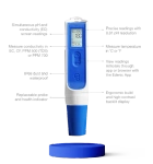 - Jednoczesne odczyty pH i przewodności (EC) na ekranie