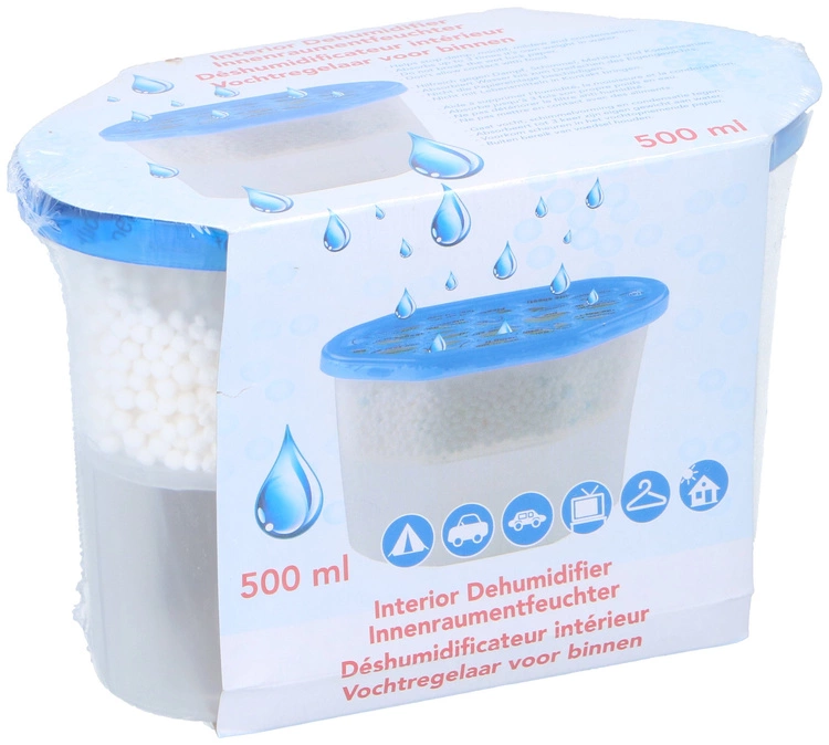 Pochłaniacz wilgoci 500ml z granulkami w formie wygodnego wiaderka do umieszczenia wszędzie tam gdzie występuje nadmierna wilgoć