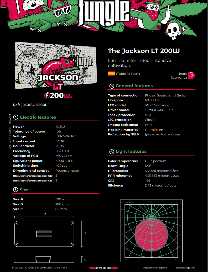 Jackson to światło LED o pełnym spektrum specjalnie opracowane do uprawy w pomieszczeniach. Ta płyta kwantowa o niskim zużyciu i wysokiej wydajności jest produkowana z diodami LED firmy Samsung o długiej żywotności do 60 000 godzin.