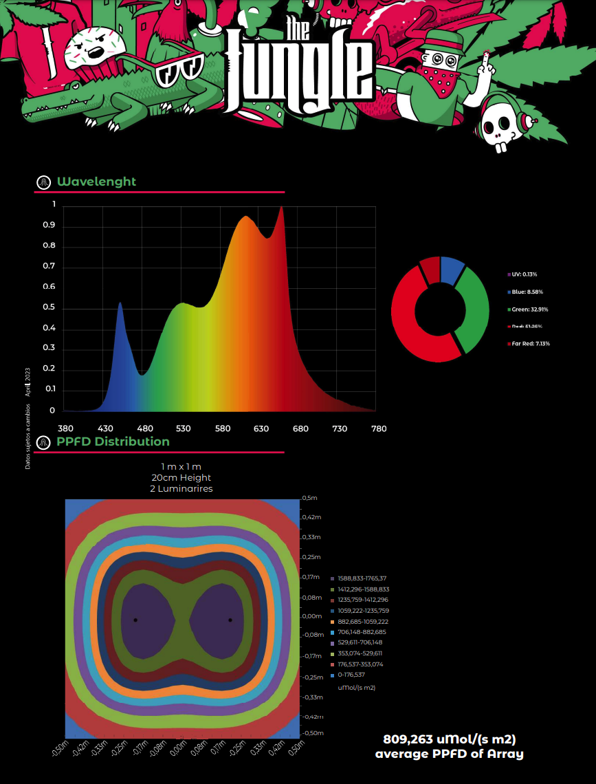 Ta lampa LED jest bardzo wydajna i dostarcza roślinom olbrzymią ilość światła. Zaleca się zachowanie minimalnej odległości między The Jackson a roślinami, aby uzyskać duże korzyści, bez szkody dla roślin.