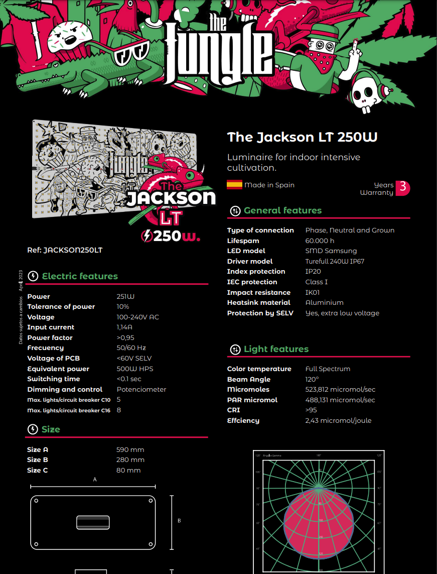 The Jackson Lite 250W i cała marka Grow The Jungle szybko zyskały reputację wśród koneserów i hodowców. LED Jackson firmy GrowTheJungle to kwantowa lampa LED o pełnym spektrum, odpowiednia do okresu wegetatywnego i kwitnienia roślin w pomieszczeniach do uprawy lub w growboxach.