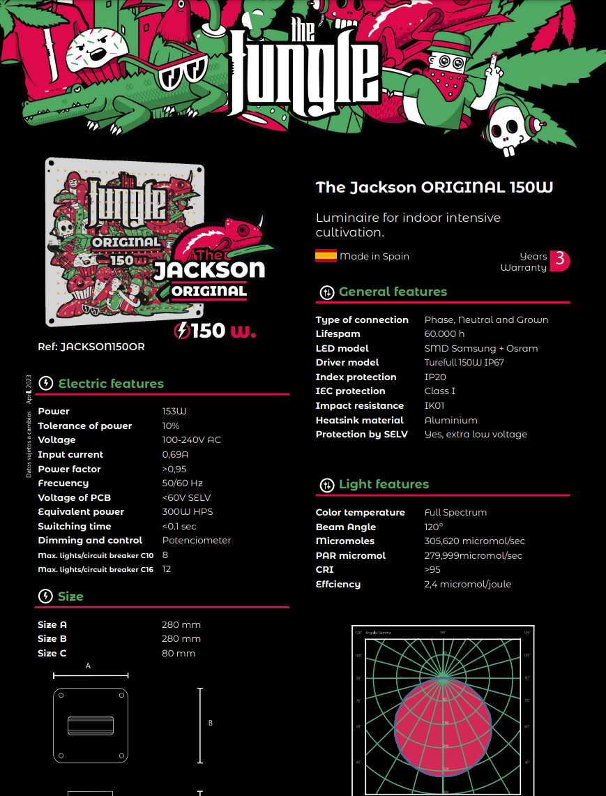 Jackson to światło LED o pełnym spektrum specjalnie opracowane do uprawy w pomieszczeniach. Ta płyta kwantowa o niskim zużyciu i wysokiej wydajności jest produkowana z diodami LED firmy Samsung o długiej żywotności do 60 000 godzin.
