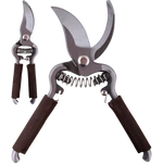 Ostrza wykonane są ze stali węglowej (carbon steel), co zapewnia efektywne i precyzyjne cięcie gałęzi, kwiatów czy pędów. Uchwyt z ciemnej skóry dodaje elegancji i komfortu chwytu, czyniąc pracę bardziej przyjemną nawet przy częstym użyciu.