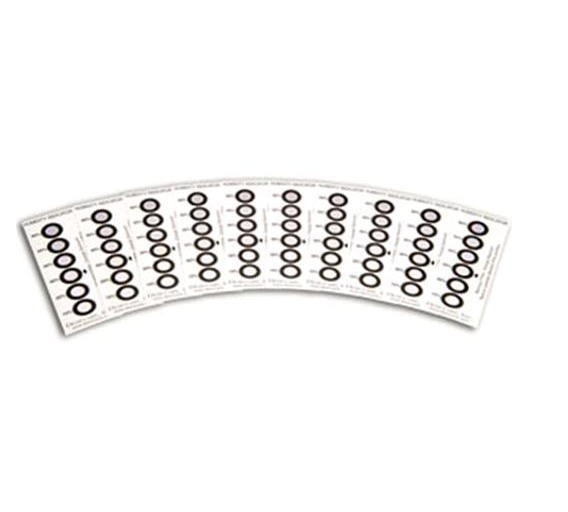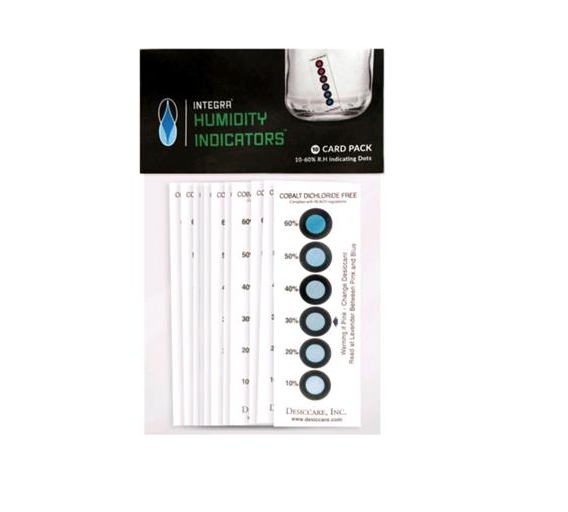 Każde opakowanie zawiera 10 kart ze wskaźnikiem wilgotności, a każda karta pokazuje wilgotność względną 10% -60%. Po prostu umieść pojedynczą kartę w obszarze, który chcesz odczytać i poczekaj, aż kropki wskaźnika zaświecą się na jasnoniebiesko, aby określić wilgotność w tym obszarze.